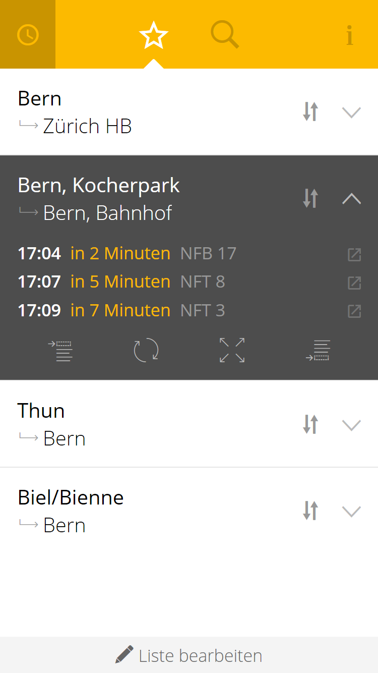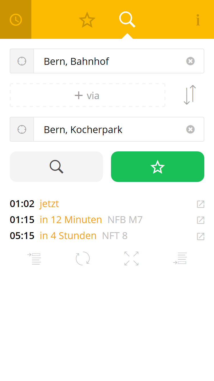 Looking up the next departure time of often-used public transport connections can be a hassle if the used app is too complicated or starts too slowly. QuickÖV solves this problem by allowing users to define favorite connections and immediately displays those after startup.